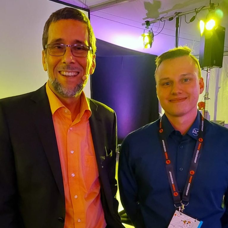 (links im Bild Prof. Dr. Volker Quaschning und rechts, ich. Zu Gast bei der Firma Trane Roggenkamp)